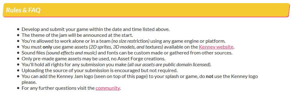 Figure 2: Charlish, R (2021) ‘Screenshot of rules for the KenneyJam’ Created on June 13th 2021