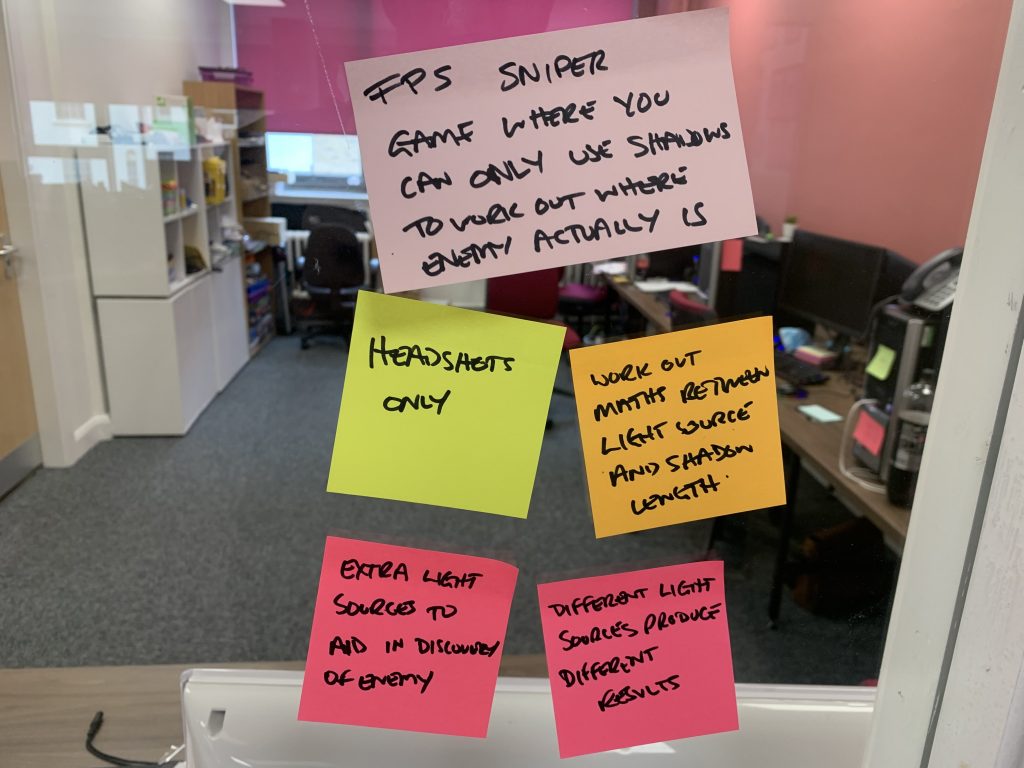 What I did next was, in essence, brainstorming. Now I do not think brainstorming, at least in the traditional way of putting a word in the middle of a piece of paper and then throwing down other words and drawing lines around them, works. For me brainstorming in a group exercise that needs input and exploration from a variety of people. So I grabbed my post it notes and started brainstorming, at work, with my colleagues around me.