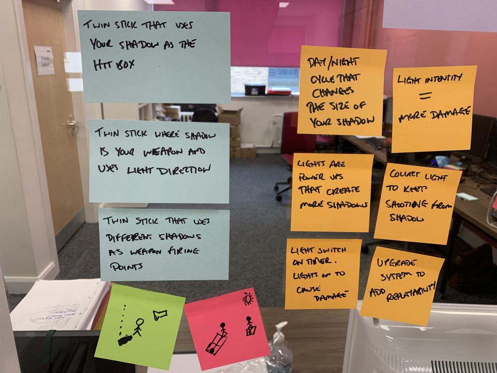 So I decided that I wanted to make something where the shadow (a somewhat useless and commonly passive aspect) would be the main game play mechanic, specifically weapon.