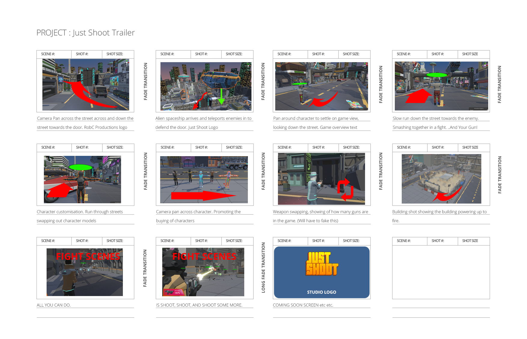 Now that I had the music I had a great starting map from which to work from. I decided I would storyboard up the trailer using screen shots from the game I had already created.